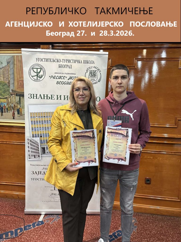 На републичком такмичењу из предмета Агенцијско и хотелијерско пословање, одржаном у Београду 27. и 28.3.2026. у конкуренцији великог броја школа из целе Србије, ученик наше школе, Лука Пешић освојио је 6.место.